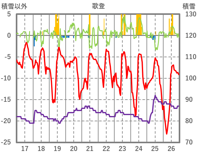 | 日 | 時 | 気温 | 降水 | 風向/風速 | 日照 | 積雪 | 降雪 |