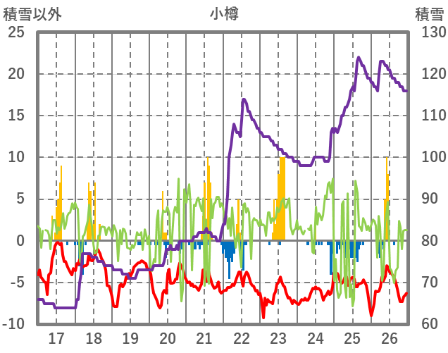 | 日 | 時 | 気温 | 降水 | 風向/風速 | 日照 | 積雪 | 降雪 |