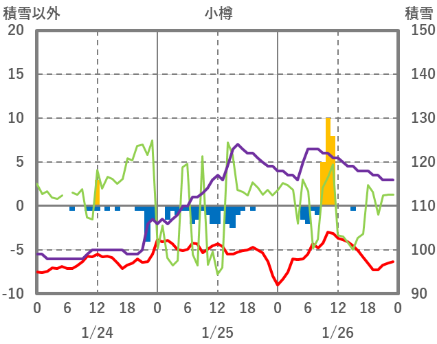 | 日 | 時 | 気温 | 降水 | 風向/風速 | 日照 | 積雪 | 降雪 |