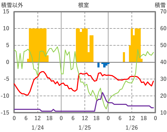 | 日 | 時 | 気温 | 降水 | 風向/風速 | 日照 | 積雪 | 降雪 |