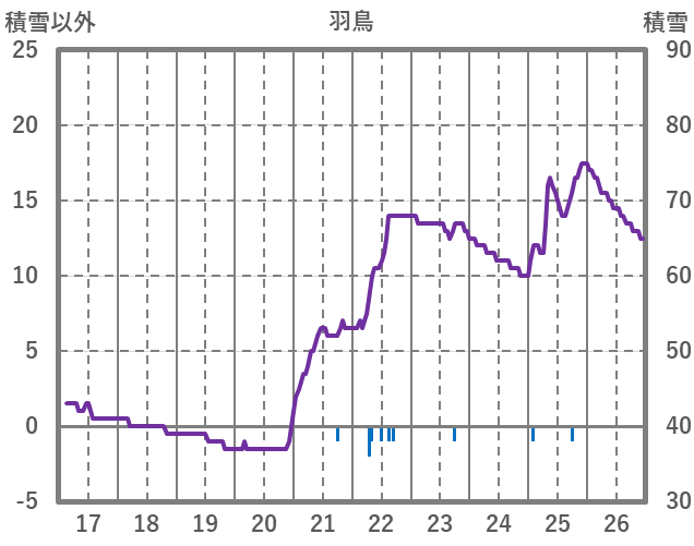 | 日 | 時 | 気温 | 降水 | 風向/風速 | 日照 | 積雪 | 降雪 |