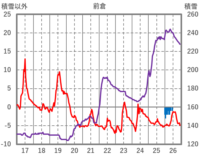 | 日 | 時 | 気温 | 降水 | 風向/風速 | 日照 | 積雪 | 降雪 |