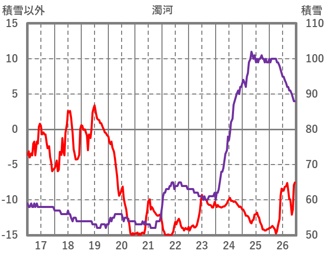 | 日 | 時 | 気温 | 降水 | 風向/風速 | 日照 | 積雪 | 降雪 |