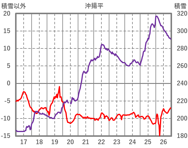| 日 | 時 | 気温 | 降水 | 風向/風速 | 日照 | 積雪 | 降雪 |
