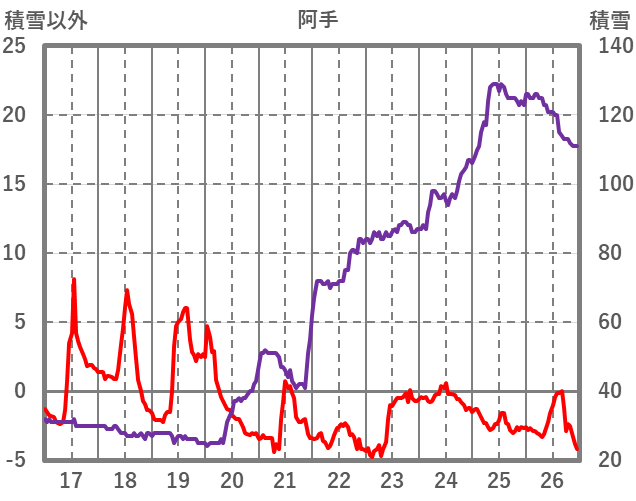 | 日 | 時 | 気温 | 降水 | 風向/風速 | 日照 | 積雪 | 降雪 |