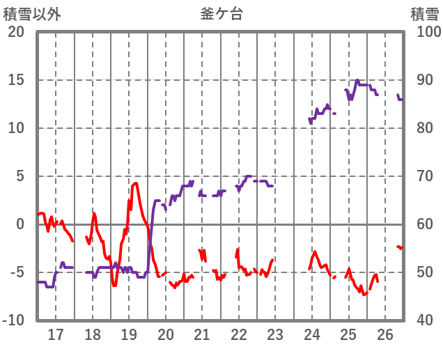 | 日 | 時 | 気温 | 降水 | 風向/風速 | 日照 | 積雪 | 降雪 |