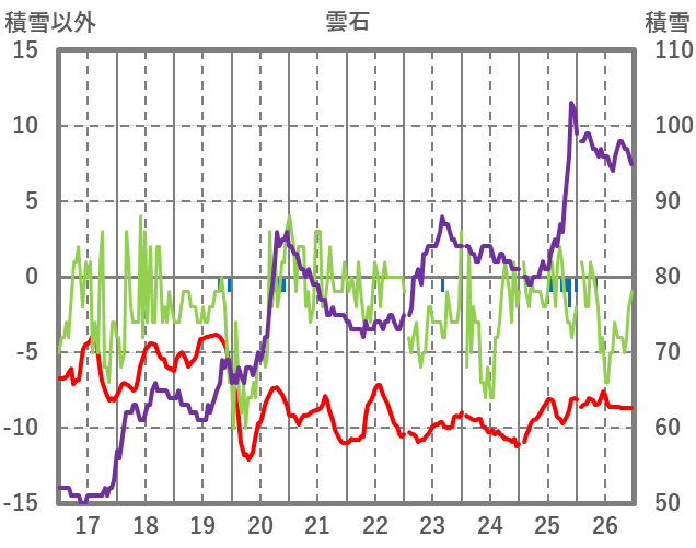 | 日 | 時 | 気温 | 降水 | 風向/風速 | 日照 | 積雪 | 降雪 |