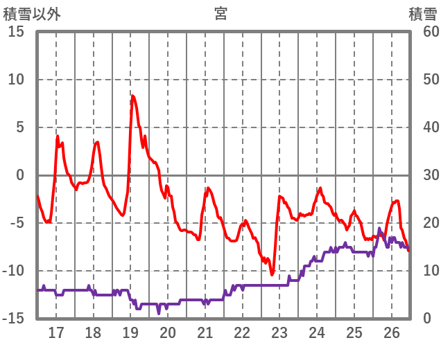 | 日 | 時 | 気温 | 降水 | 風向/風速 | 日照 | 積雪 | 降雪 |