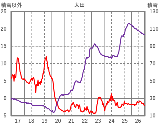 | 日 | 時 | 気温 | 降水 | 風向/風速 | 日照 | 積雪 | 降雪 |