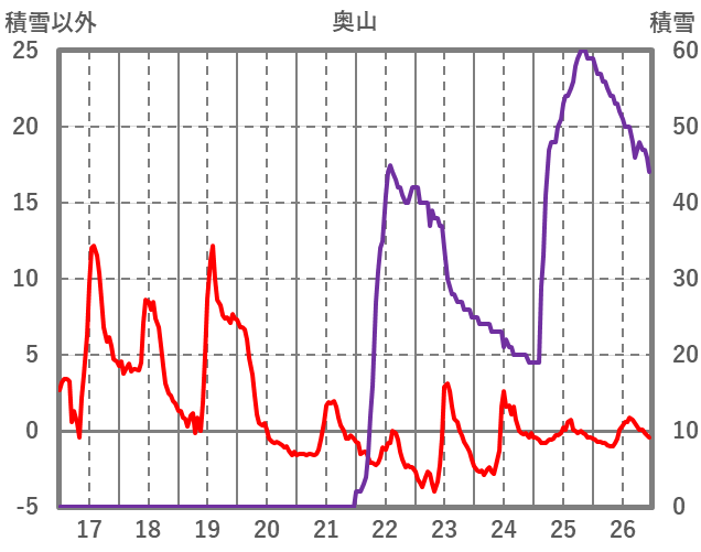 | 日 | 時 | 気温 | 降水 | 風向/風速 | 日照 | 積雪 | 降雪 |