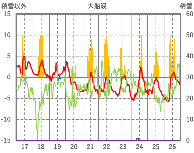 | 日 | 時 | 気温 | 降水 | 風向/風速 | 日照 | 積雪 | 降雪 |