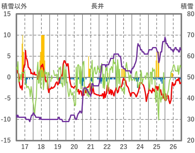 | 日 | 時 | 気温 | 降水 | 風向/風速 | 日照 | 積雪 | 降雪 |