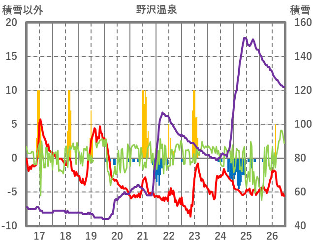 | 日 | 時 | 気温 | 降水 | 風向/風速 | 日照 | 積雪 | 降雪 |