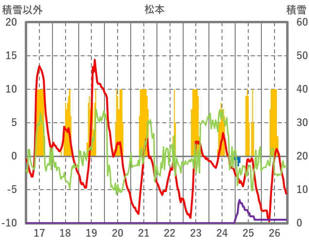 | 日 | 時 | 気温 | 降水 | 風向/風速 | 日照 | 積雪 | 降雪 |