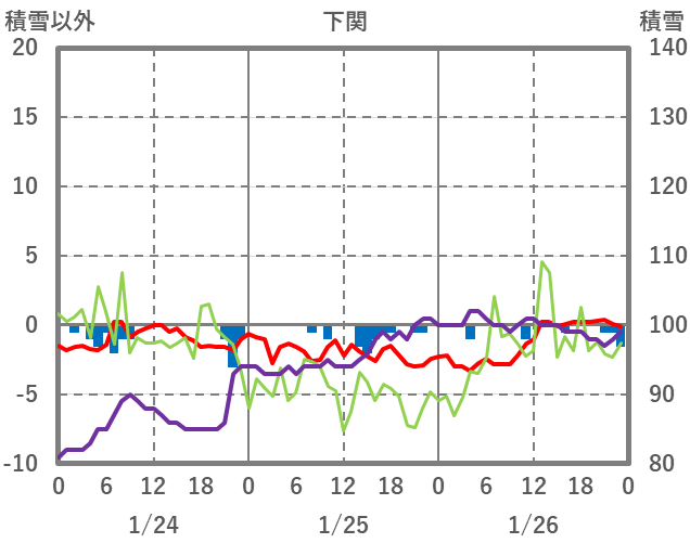 | 日 | 時 | 気温 | 降水 | 風向/風速 | 日照 | 積雪 | 降雪 |