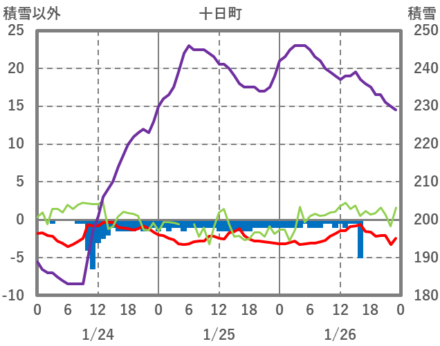 | 日 | 時 | 気温 | 降水 | 風向/風速 | 日照 | 積雪 | 降雪 |