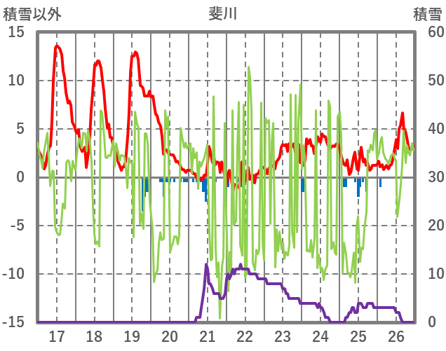 | 日 | 時 | 気温 | 降水 | 風向/風速 | 日照 | 積雪 | 降雪 |