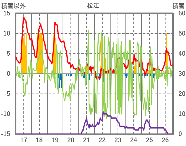 | 日 | 時 | 気温 | 降水 | 風向/風速 | 日照 | 積雪 | 降雪 |