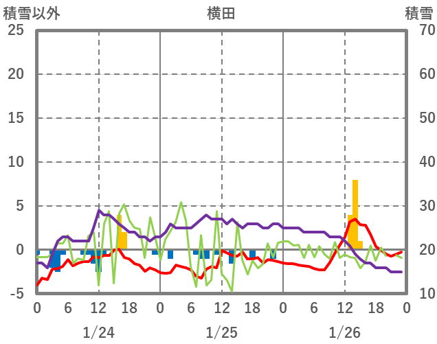 | 日 | 時 | 気温 | 降水 | 風向/風速 | 日照 | 積雪 | 降雪 |