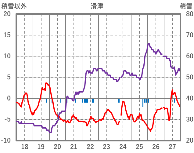 | 日 | 時 | 気温 | 降水 | 風向/風速 | 日照 | 積雪 | 降雪 |