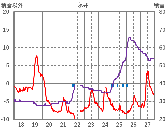 | 日 | 時 | 気温 | 降水 | 風向/風速 | 日照 | 積雪 | 降雪 |