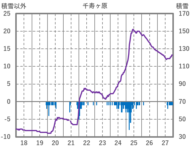 | 日 | 時 | 気温 | 降水 | 風向/風速 | 日照 | 積雪 | 降雪 |