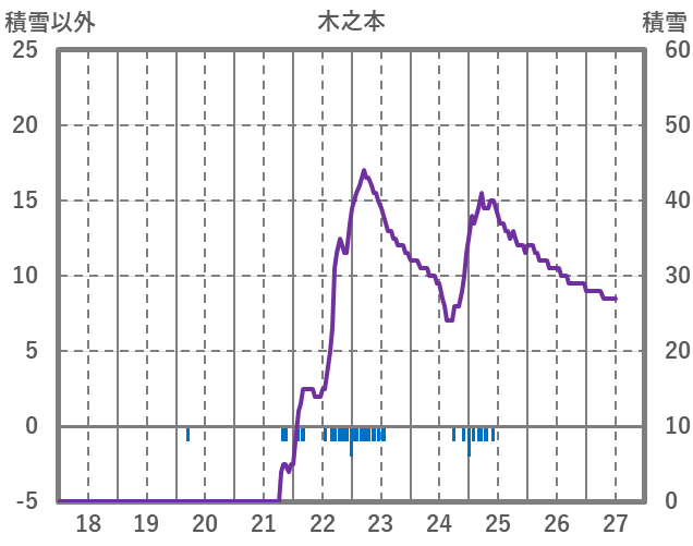 | 日 | 時 | 気温 | 降水 | 風向/風速 | 日照 | 積雪 | 降雪 |