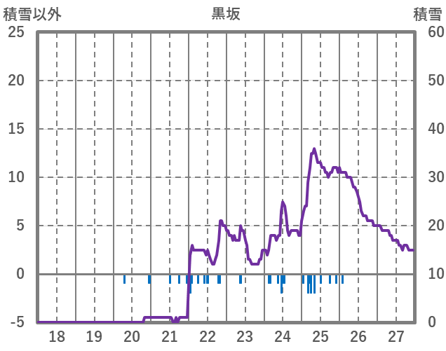 | 日 | 時 | 気温 | 降水 | 風向/風速 | 日照 | 積雪 | 降雪 |