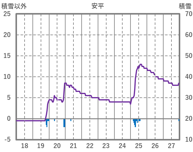 | 日 | 時 | 気温 | 降水 | 風向/風速 | 日照 | 積雪 | 降雪 |