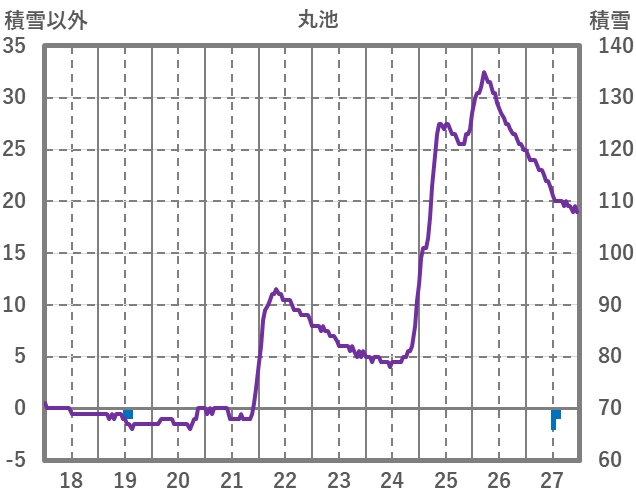 | 日 | 時 | 気温 | 降水 | 風向/風速 | 日照 | 積雪 | 降雪 |