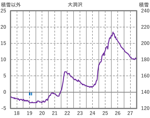 | 日 | 時 | 気温 | 降水 | 風向/風速 | 日照 | 積雪 | 降雪 |