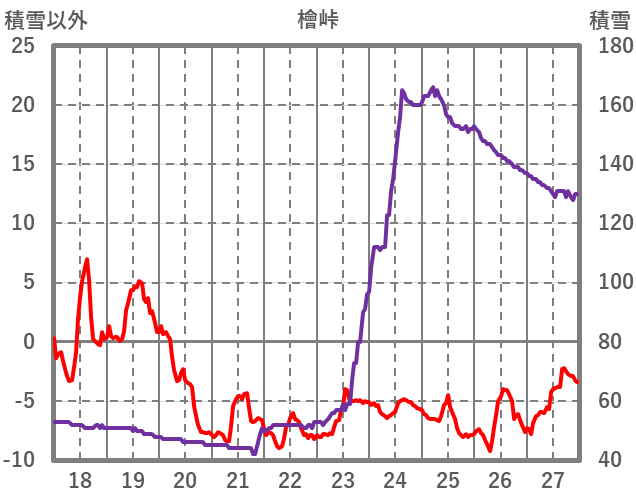 | 日 | 時 | 気温 | 降水 | 風向/風速 | 日照 | 積雪 | 降雪 |