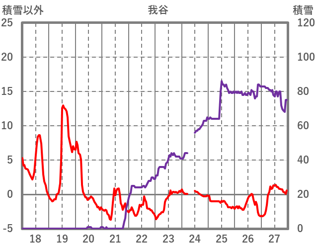 | 日 | 時 | 気温 | 降水 | 風向/風速 | 日照 | 積雪 | 降雪 |