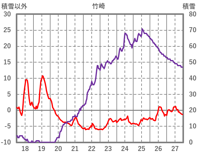 | 日 | 時 | 気温 | 降水 | 風向/風速 | 日照 | 積雪 | 降雪 |