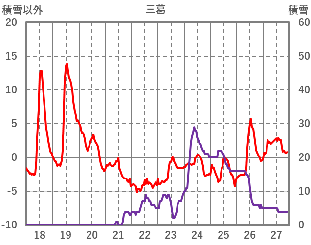 | 日 | 時 | 気温 | 降水 | 風向/風速 | 日照 | 積雪 | 降雪 |