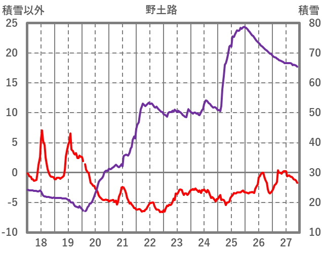 | 日 | 時 | 気温 | 降水 | 風向/風速 | 日照 | 積雪 | 降雪 |