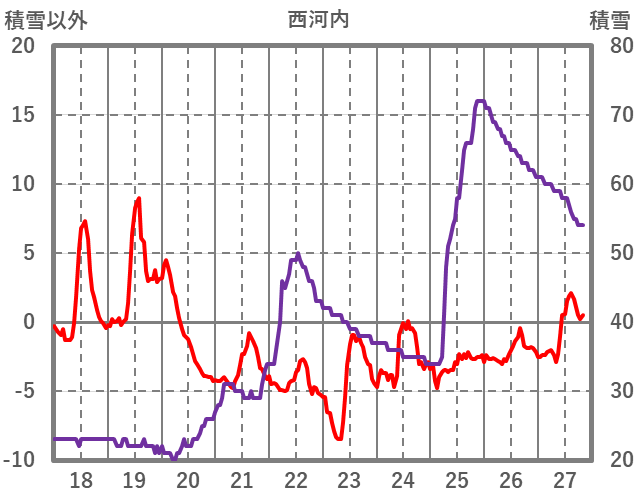| 日 | 時 | 気温 | 降水 | 風向/風速 | 日照 | 積雪 | 降雪 |