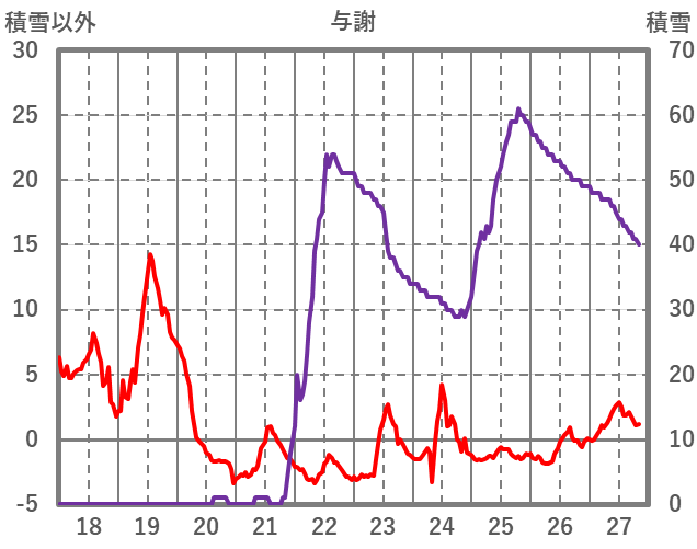 | 日 | 時 | 気温 | 降水 | 風向/風速 | 日照 | 積雪 | 降雪 |