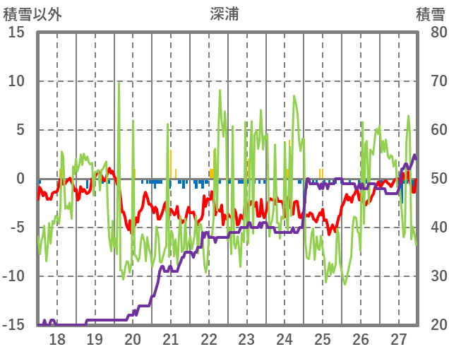 | 日 | 時 | 気温 | 降水 | 風向/風速 | 日照 | 積雪 | 降雪 |