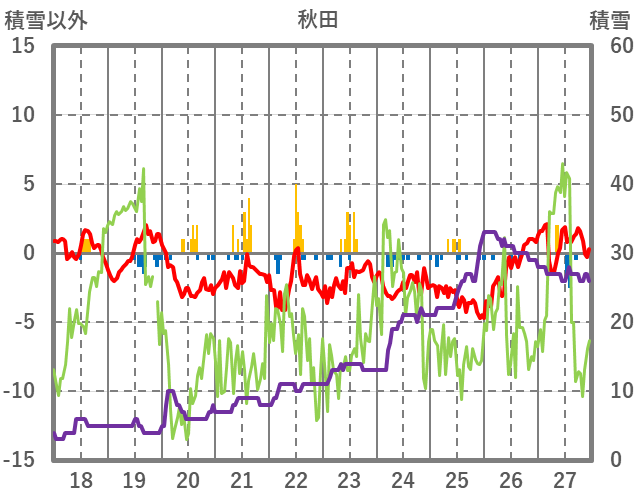 | 日 | 時 | 気温 | 降水 | 風向/風速 | 日照 | 積雪 | 降雪 |