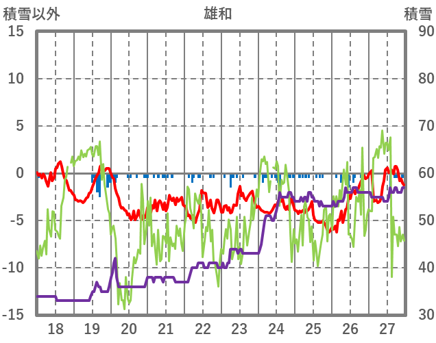 | 日 | 時 | 気温 | 降水 | 風向/風速 | 日照 | 積雪 | 降雪 |