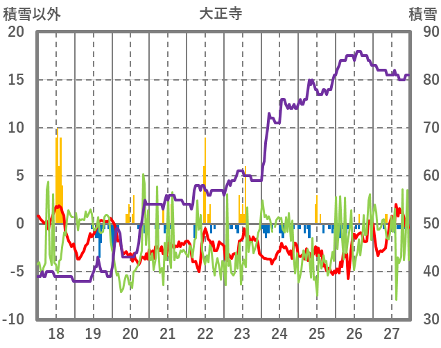 | 日 | 時 | 気温 | 降水 | 風向/風速 | 日照 | 積雪 | 降雪 |