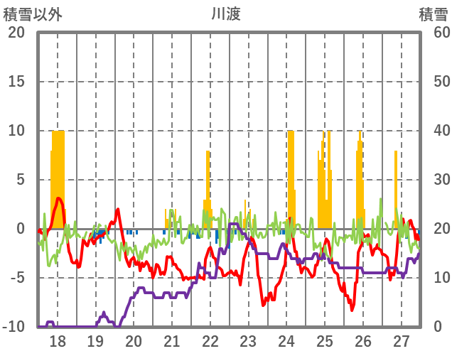 | 日 | 時 | 気温 | 降水 | 風向/風速 | 日照 | 積雪 | 降雪 |