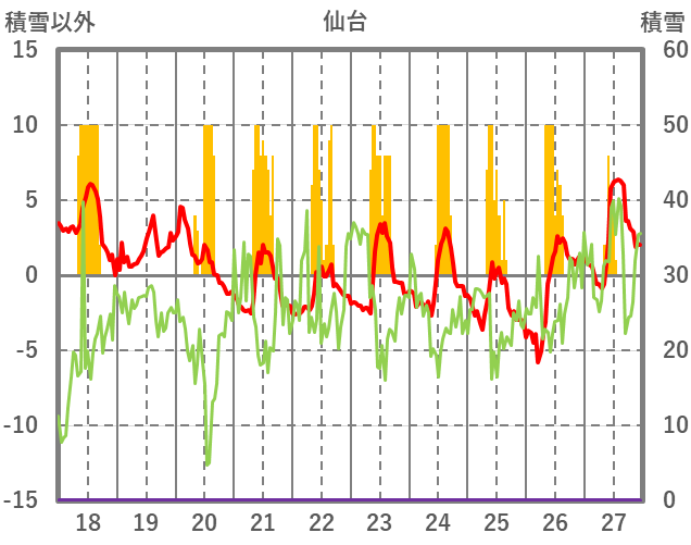 | 日 | 時 | 気温 | 降水 | 風向/風速 | 日照 | 積雪 | 降雪 |