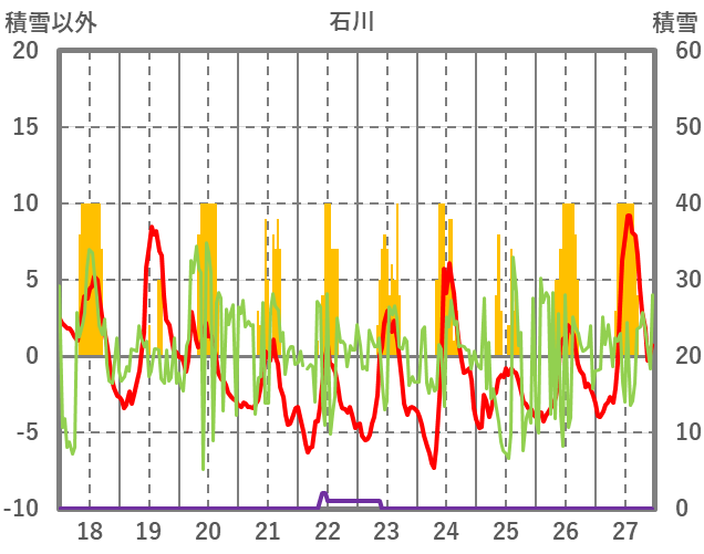 | 日 | 時 | 気温 | 降水 | 風向/風速 | 日照 | 積雪 | 降雪 |