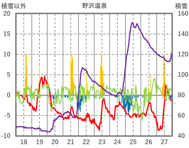 | 日 | 時 | 気温 | 降水 | 風向/風速 | 日照 | 積雪 | 降雪 |
