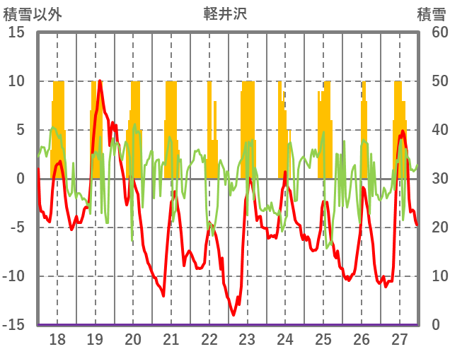 | 日 | 時 | 気温 | 降水 | 風向/風速 | 日照 | 積雪 | 降雪 |