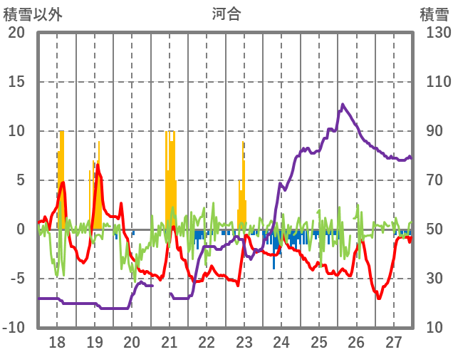 | 日 | 時 | 気温 | 降水 | 風向/風速 | 日照 | 積雪 | 降雪 |