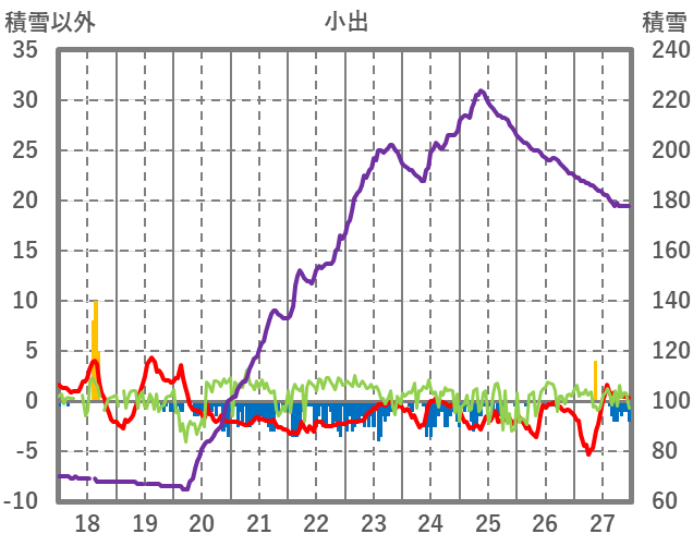 | 日 | 時 | 気温 | 降水 | 風向/風速 | 日照 | 積雪 | 降雪 |