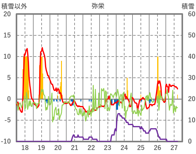| 日 | 時 | 気温 | 降水 | 風向/風速 | 日照 | 積雪 | 降雪 |